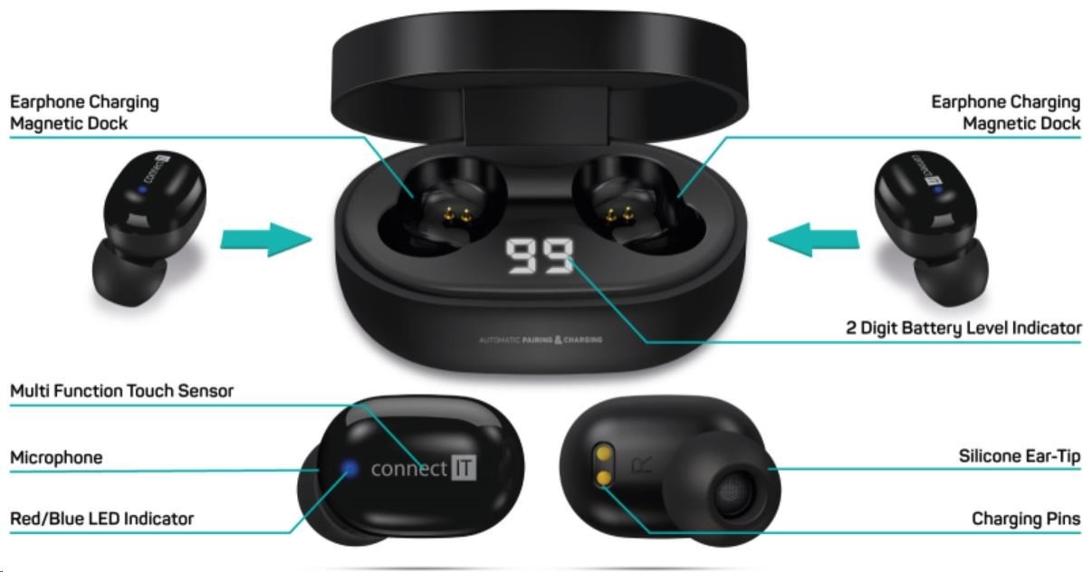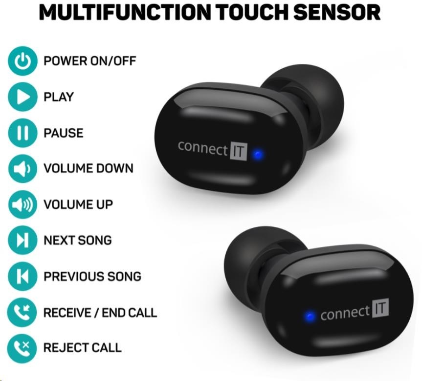 Máte k produktu dotaz? Zeptejte se nás.Hodnocení produktu CONNECT IT True Wireless SensorTouch sluchátka do uší s mikrofonem, černá