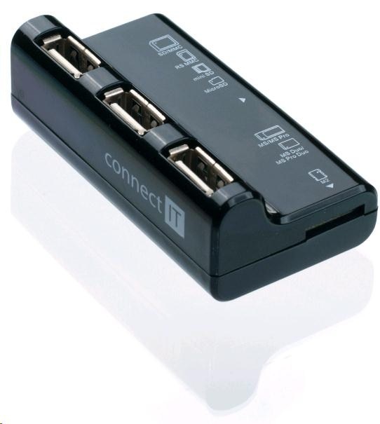 CONNECT IT USB 2.0 hub 3 porty + čtečka karet BOOTDruh IO zařízení:Čtečka paměťových karet - externí; Provedení:Externí.