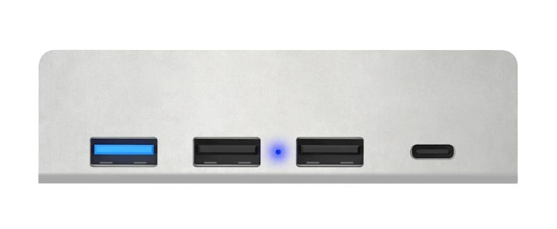 Prakticky tvarovaný USB-C/USB-A hub pro připojení až 4 periferií (USB-C, 1x USB-A 3.2 gen.1, 2x USB-A 2.0).