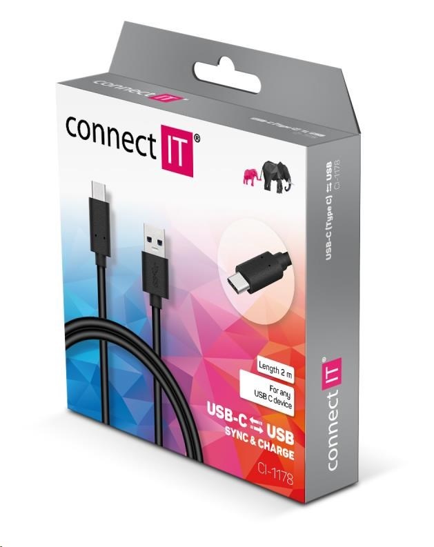 CONNECT IT Wirez USB-C (Type C) -> USB-A, USB 3.1 Gen 1, černá, 2 mSpecifikace kabelu / redukce:USB kabel.