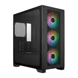 Cooler Master case Elite 301, mATX, Průhledná bočnice, 3x 120mm ARGB Fan, ČernáProvedení skříně:Mini Tower / micro ATX; Barva skříně:Černá; Počet pozic 3.5" (HDD):1; Počet pozic 2.5" (SSD):2.