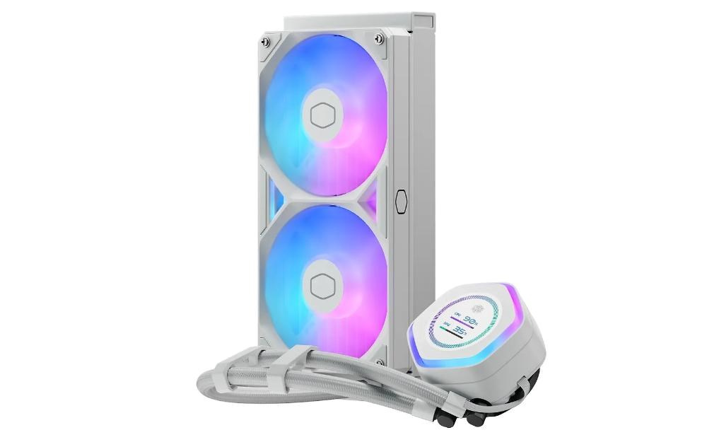Cooler Master vodní chladič MasterLiquid Atmos II LCD 240, 2x120mm, LGA1851, AM5, bíláTyp chladiče:Vodní; Využití chladiče:Na procesory; Velikost ventilátoru:120x120; Barva podsvícení:ARGB; Napájecí konektor:4pin.