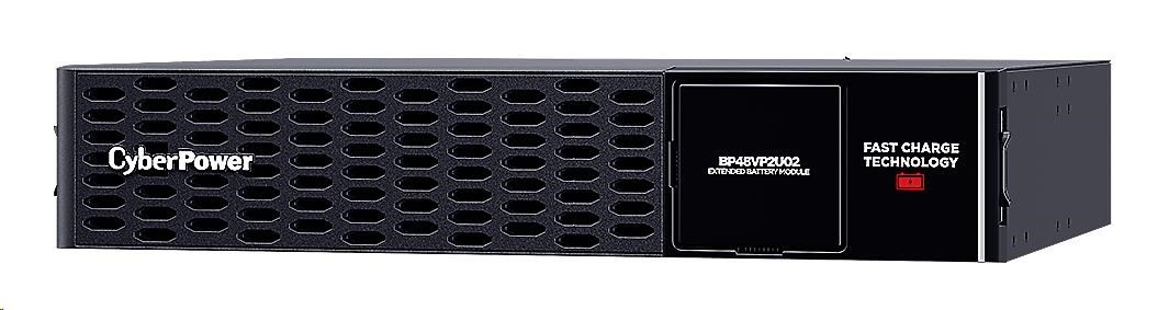 Přídavná baterie k ups CyberPower Professional Series III RackMount. CyberPower BP48VP2U02 je rozšířující externí bateriový modul (EBM), který lze použít ve spojení s kompatibilními systémy UPS k prodloužení běhu systému během přerušení napájení. Modul baterie je dodáván s napájecími konektory typu plug-and-play DC, které umožňují přidání několika EBM. vestavěný nabíjecí modul umožňuje nabíjení EBM přímo ze zásuvky a bez nabíjení z UPS, což významně šetří celkový čas nabíjení při současném nabíjení více EBM. Produkt je vybaven bateriemi výměnnými za provozu, které uživatelům umožňují bezpečně vyměnit bateriový modul bez přerušení připojených zařízení. Uzavřená olověná kyselinová baterie používaná v EBM je stabilní a bezpečná, což zajišťuje spolehlivý výkon systému. Je vybaven kvalitním kovovým krytem pro průmyslové prostředí a je vhodný pro datová centra a kritické aplikace.