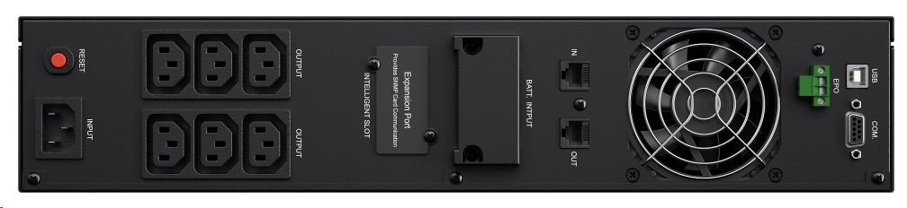 | Dodávka obsahuje | UPS, Uživatelský manuál, Rackmount lišty, Rackmount úchyty, Telefoní kabel, USB kabel, Seriový kabel (RS232), M5X8L (8), M5X12L (12), Plastové podložky (8) Záslepka (12), PowerPanel® Business Edition software CD. Gumové podložky pod UPS(12) |