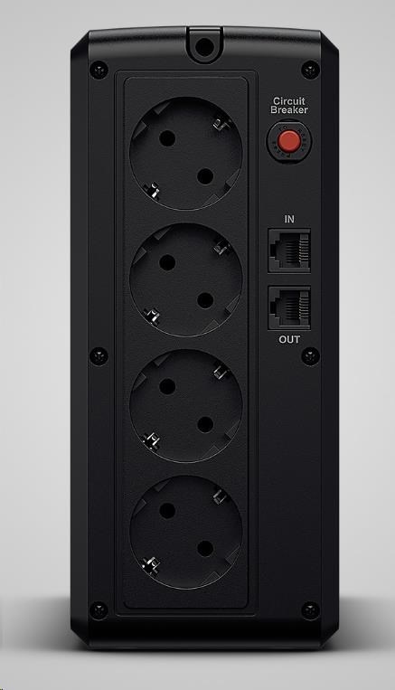 CyberPower UT GreenPower Series UPS 1050VA, 630W, German SCHUKO zásuvkyPočet výstupních zásuvek:4; Použití:Desktop; Provedení:Tower; Zdánlivý výkon VA:1050; Topologie:Line-Interactive; Fáze (Vstup/Výstup):1:1; Komunikace:USB; Typ výstupu:SCHUKO; Ochrana telefonní sítě; Ochrana datové sítě.