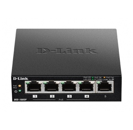 D-Link DES-1005P B1 5-Port 10/100 PoE Desktop Switch, 4x PoE+, 60W pro PoE