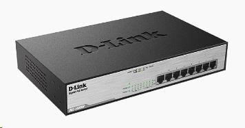 8-Port Desktop Gigabit PoE+ Switch - 8-Port 10/100/1000 Gigabit Ethernet Ports - 8 x PoE Ports - PoE output up to 30 watts per port - IEEE 802.3x flow control - Auto Half-/Full-Duplex Mode - Max power budget 140 watts - Auto MDI/MDI-X crossover for all ports - 11-inch Desktop/Rackmount Size, 1U height - Rack Mountable - D-Link Green Technology - Store-and-forward switching scheme - RoHS compliant.
