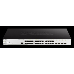 "24-Port 10/100/1000BASE-T PoE + 4-Port 1 Gbps SFP Ports Metro Ethernet Switch - 24 x 10/100/1000BASE-T PoE ports - 4 x 1 Gbps SFP ports - Switching Capacity 56 Gbps - PoE Capable Ports 1-24 - PoE Power Budget 193W - Layer 3 Features: H/W Ver. B1 IPv4/IPv6 Interface (Max. 4 IPv4/IPv6 Interfaces), Static Route, Max. 128 ARP Entries, Supports 255 static ARP entries - Layer 2 Features: Supports IEEE 802.3ad Link Aggregation (Supports max. 8 groups, 8 ports per group), Port-based Q-in-Q, Lookback detection, Spanning Tree Protocols: 802.1D STP, 802.1w RSTP, 802.1s MSTP, 16K MAC address table and Jumbo Frame up to 9,216 Bytes - Quality of Service (QoS) – Bandwidth Control, Queue handling, 8 outbound queues - Management: Web-based GUI (IPv4/IPv6), Full Command Line Interface (CLI) through Telnet, SSH and the console port, D-Link Network Assistant Utility (DNA) - Access Control Lists (ACLs) Security: SSH, Port security (up to 64 MAC addresses per port), IP-MAC-Port Binding (IMBP), Broadcast/Multicast/Unicast storm control, IP Inspection, (IP source Guard), Duplicate Address Detection (DAD), D-Link Safeguard Engine, BPDU/DoS attack prevention, Traffic segmentation - VLAN: Asymmetric VLAN, Voice VLAN, GVRP, Private VLAN, ISM VLAN (multicast VLAN), VLAN trunking - Access Control, Authentication for management access (local/RADIUS/TACACS+) - MTBF 331,669 hours - Acoustic: High speed: 52.9 dB(A), Low speed: 45.3 dB(A) - Ventilation: 2 x Smart Fans - Weight 3.34 kg - 19-inch standard rack-mount width. 1U height. Dimension 440x210x44mm - Surge protection ".