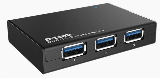D-Link DUB-1340 4-Port Superspeed USB 3.0 HubDruh IO zařízení:USB hub nebo switch; Provedení:Externí.