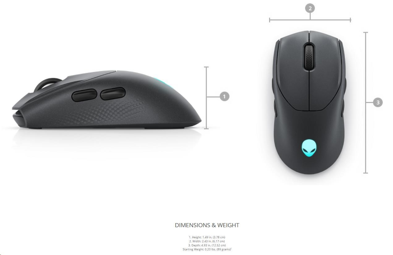 DELL Alienware Tri-Mode Wireless Gaming Mouse - AW720M (Dark Side of the Moon)Rozhraní myši:Bezdrátová s USB dongle; Druh myši:Optická; Specifikace myši:4 a více tlačítek, S kolečkem.