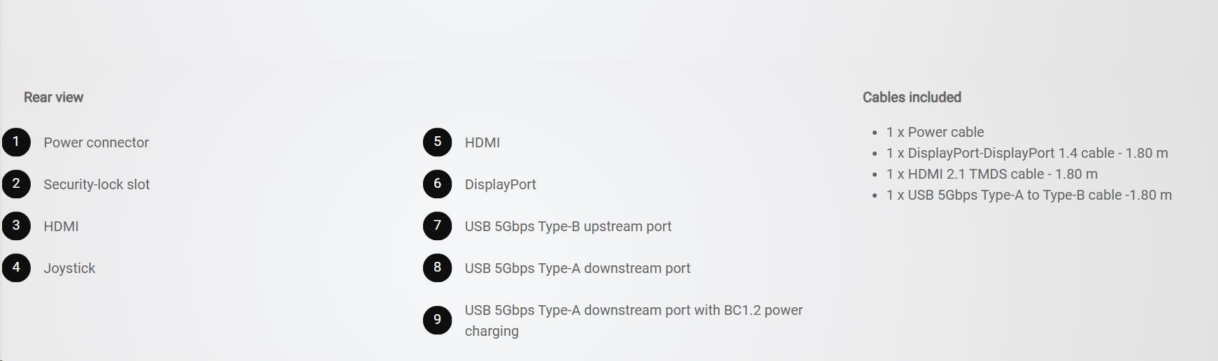 - 2 × HDMI (HDCP 1.4 & 2.3) – podpora až FHD 1920 x 1080, 255 Hz, TMDS, HDR, VRR dle HDMI 2.1