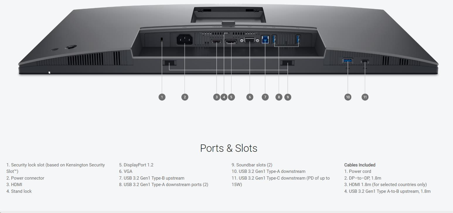 DELL LCD P2725H - 27"/IPS/LED/1920x1080/16:9/100Hz/8ms/1500:1/300 cd/m2/HDMI/DP/VGA/Pivot/VESA/3YNBD (210-BMGC)Rozlišení displeje:1920x1080 (Full HD); Úhlopříčka displeje ("):27; Výbava:VESA montáž, Pivot, Nastavitelná výška; HDMI počet:1; HDMI verze:1.4; DP počet:1; DP verze:1.4; USB počet:5; Doba odezvy (ms):8; Formát obrazovky:16:9; Typ panelu:IPS; Jas (cd/m2):300; Kontrast:1:1500; Povrchová úprava displeje:Matný; VESA rozměry:100x100; Standardní záruka (roky):3.