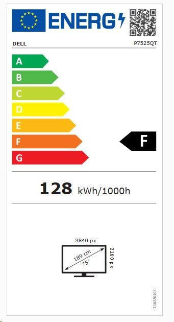 DELL LCD P7525QT - 74,5"/IPS/LED/3840x2160/16:9/60Hz/5ms/1200:1/400 cd/m2/DP/HDMI/VESA/3YNBD (210-BQZX)Rozlišení displeje:3840x2160 (4K UHD); Úhlopříčka displeje ("):74.5; Výbava:VESA montáž; Rozhraní vstup:HDMI; HDMI počet:1; HDMI verze:1.4; DP počet:1; DP verze:1.2; Doba odezvy (ms):8; Formát obrazovky:16:9; Typ panelu:IPS; Jas (cd/m2):400; Kontrast:1:1200; Povrchová úprava displeje:Matný; VESA rozměry:400x400; Energetická třída:F.