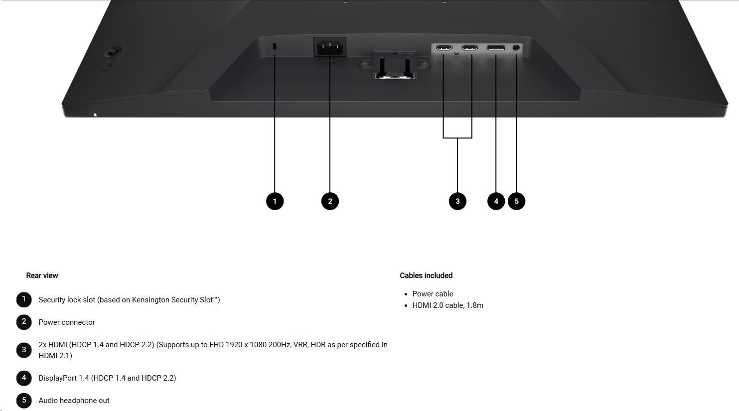 DELL LCD SE2725HG - 27"/FHD/IPS/1920x1080/16:9/200Hz/1ms/1000:1/300 cd/m2/HDMI/DP/VESA/3YNBD (210-BSNS)Rozlišení displeje:1920x1080 (Full HD); Úhlopříčka displeje ("):27; Výbava:VESA montáž; Rozhraní vstup:HDMI; HDMI počet:2; HDMI verze:1.4; DP počet:1; DP verze:1.4; Doba odezvy (ms):1; Formát obrazovky:16:9; Typ panelu:IPS; Jas (cd/m2):300; Kontrast:1:1000; Povrchová úprava displeje:Matný; VESA rozměry:100x100; Energetická třída:E.