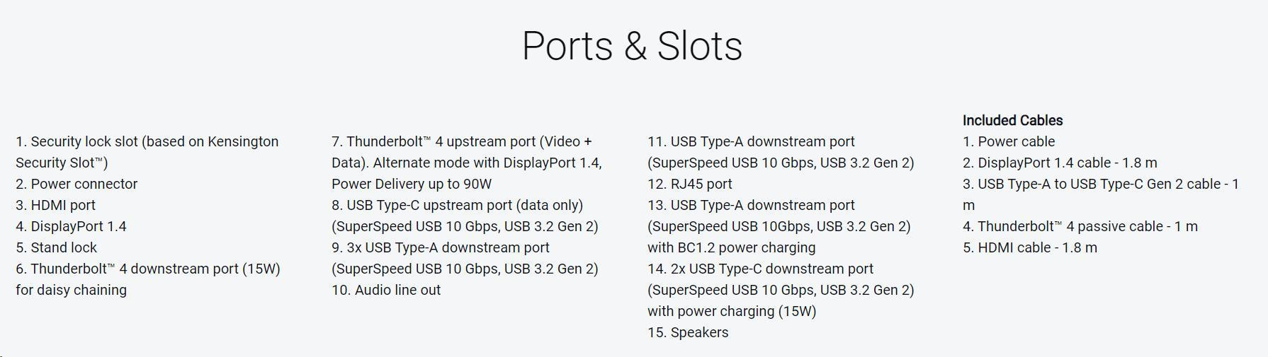 - 1 x Thunderbolt™ 4 upstream port (Video + Data), Alternate mode s DisplayPort 1.4, Power Delivery až 90 W