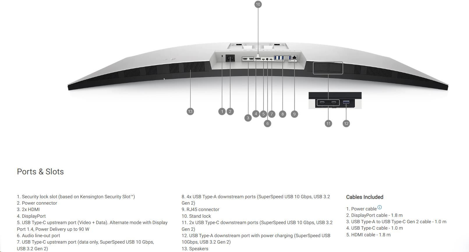 - USB Type-C upstream port (Video + Data, Alternate mode s DisplayPort 1.4, Power Delivery až 90 W)