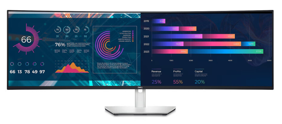 Dell UltraSharp je jiný než obyčejné monitory. Na 49 palcích, které lze softwarově rozdělit na dvě samostatné obrazovky, totiž umožní pokročilý multitasking a také servíruje obraz nejvyšší kvalit s rozlišením 5120 × 1440 pixelů. Exceluje ale i v oblasti dalších technologií, což dokresluje například nasazením moderního USB-C pro napájení, přenos dat, videa i zvuku přes jediný kabel. Ten navíc doplňuje i 2,5 GbE RJ45 pro připojení k internetu či nástroje ulehčující nastavení i správu monitoru. Ohromí vás také integrovaný zvuk, minimalizované rámečky nebo inovovaná konstrukce zabraňující změti kabelů na stole. Technologie ComfortView Plus se pak postará o to, že se i po hodinách tvrdé práce budete cítit odpočatí.