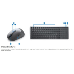 DELL Multi-Device Wireless Keyboard and Mouse - KM7120W - Czech/SlovakRozhraní setu:Bezdrátový Bluetooth; Lokalizace klávesnice:CZ/SK; Druh myši:Optická; Výbava klávesnice:Multimediální klávesy.