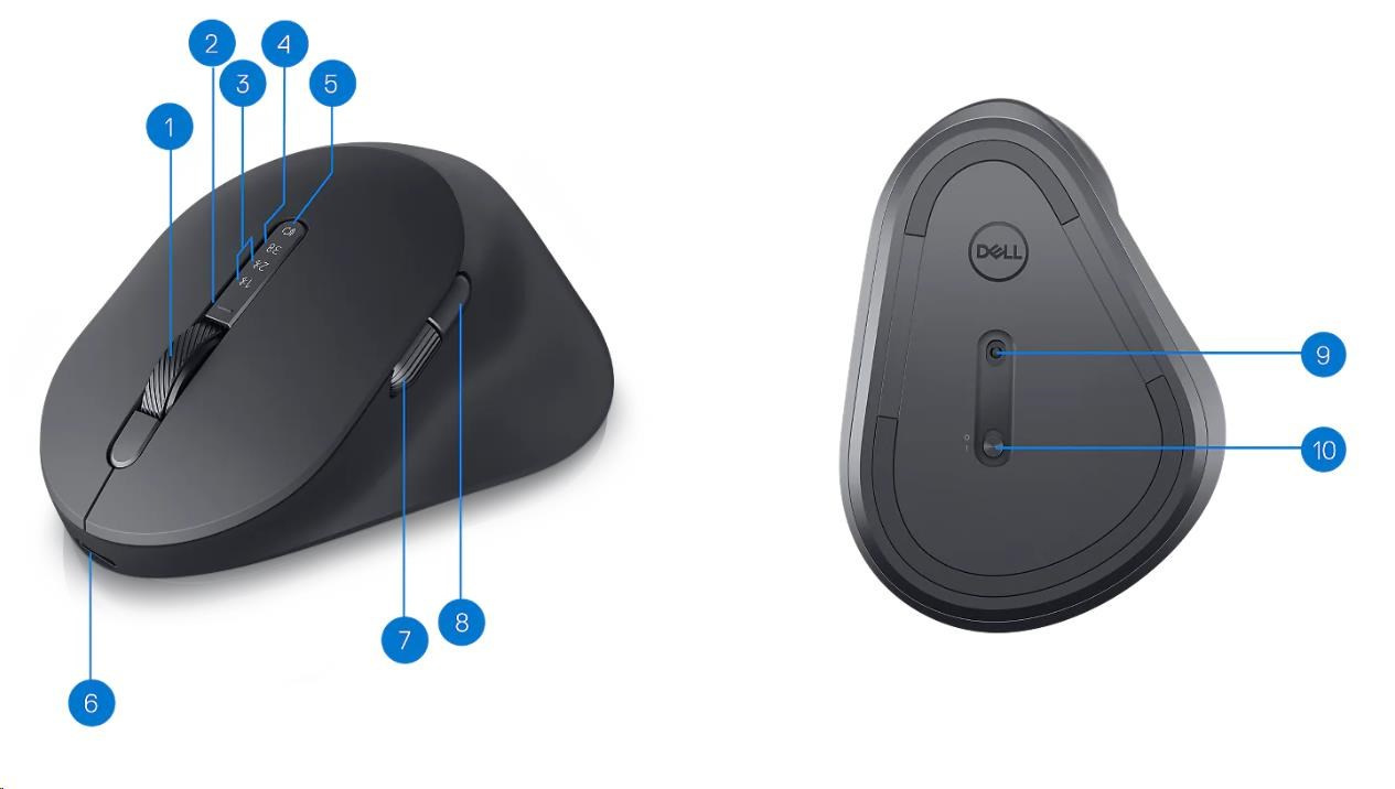 DELL MYŠ Premier Rechargeable Mouse - MS900Rozhraní myši:Bezdrátová Wi-Fi; Specifikace myši:S kolečkem.