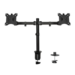 Maximalizujte svůj pracovní prostor s DESQ Dvojitým ramenem na monitor, ideálním pro domácí kancelář, práci, gaming nebo studium. Toto ergonomické řešení umožňuje přesné nastavení výšky, úhlu a rotace monitorů, což zvyšuje komfort a efektivitu práce. ? Montáž pomocí C-Clamp + Desk-thru pro flexibilní a bezpečné uchycení ? Jemné nastavení výšky každého monitoru pomocí regulačního šroubu ? Rychloupínací VESA deska pro snadnou instalaci monitorů ? Kompatibilní s monitory od 17” do 32” (VESA 75x75 mm a 100x100 mm) ? Nosnost 9 kg na každé rameno – spolehlivá podpora většiny monitorů ? Možnost snadné rotace mezi režimem na výšku a na šířku ? Držák na imbusové klíče – nástroje vždy po ruce S DESQ dvojitým ramenem na monitor si nastavíte výšku, vzdálenost a úhel monitorů přesně podle vašich potřeb. To pomáhá snížit namáhání krku, zad a očí a zároveň uvolnit cenný prostor na stole..