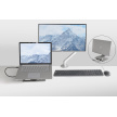Proměňte svůj notebook v výkonnou desktopovou pracovní stanici s DESQ Notebook Dockem. Stačí připojit USB-C kabel a získáte přístup k externím monitorům, klávesnicím, myším a dalším periferiím. Stojan je kompatibilní s MacBooky, notebooky s USB Type-C, tablety a mobilními telefony. ? Promění váš notebook v desktop PC s plynulou integrací přes USB-C ? Plně nastavitelný pro ergonomickou výšku a úhly ? Zvedá obrazovku až o 28 cm pro lepší komfort při sledování ? Platforma nastavitelná až do úhlu 70 ° pro dokonalou polohu obrazovky ? Lehká konstrukce a skládací design pro snadné přenášení ? Výřezy v konstrukci podporují proudění vzduchu a udržují notebook v chladu ? Pevná a odolná hliníková slitina pro dlouhou životnost ? Silikonové podložky a nožky pro stabilitu a ochranu proti skluzu S DESQ stojanem na notebook nastavíte obrazovku do ideální výšky, což podporuje zdravé a ergonomické držení těla a pomáhá předcházet bolesti zad, krku a únavě očí..