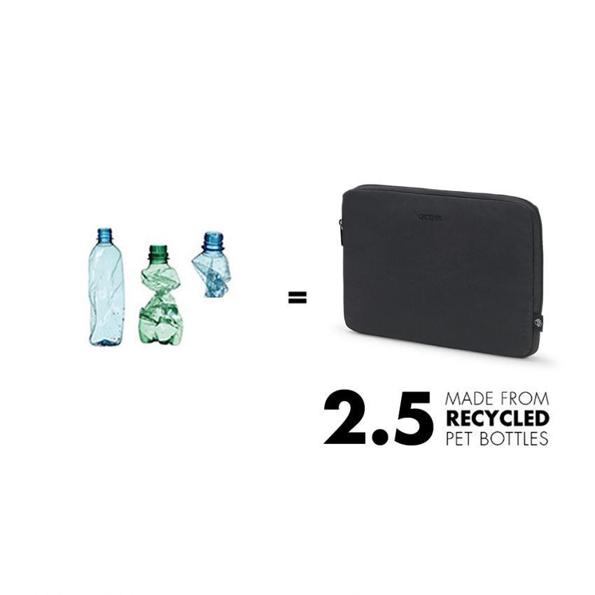 Today's actions shape tomorrow's world. Which is why, here at DICOTA, we are dedicated to developing environmentally friendly solutions and therefore make all the items in our ECO collections out of sustainable, recycled PET. We reuse up to 36 PET bottles, so you will receive an environmentally friendly product with a life-long guarantee. Our PET products also have the quality, look and finish that you know and love. For all those who want to transport their notebook easily and flexibly. The Sleeve Eco BASE is made from elastic polyester and provides optimum protection against scratches and minor damage. The particularly lightweight cover is suitable for space-saving transport of your laptop in a backpack, suitcase, bag or simply in your hand. A further plus point: the zip is equipped with extra protection on the inside to prevent scratches to the laptop. The Sleeve Eco BASE is perfect for you if you are always on the go and want to support the recycling of PET bottles with an eco-friendly bag. Made of 2.5 recycled PET bottles Guarantees optimum protection against scratches and minor damage Zip is equipped with an extra protection on the inside to avoid scratches to the notebook Lightweight design More Information Item number D31823-RPET Color black Volume in liters 0 Material 300D x 300D rPET Warranty Lifetime / 30 years EAN 7640186419550 Max. Device Measurements (mm) 315 x 30 x 215 mm 12.4 x 1.18 x 8.46 inch Product Measurements (mm) 335 x 25 x 235 mm 13.19 x 0.98 x 9.25 inch Weight 0.1 kg / 0.22 lbs.