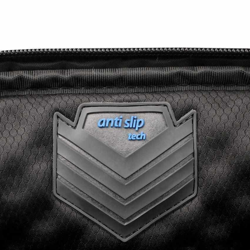 Characteristics • Made of 38.5 recycled PET bottles • Lockable and cushioned notebook compartment with fitall system and anti slip technology • Maximum security thanks to Memory Foam and EVA frame protection • EVA moulded slip pocket (Nylex material) for tablets up to 12.9" • Expandable compartment for documents and mobile equipment • Two additional document compartments at the rear • Spacious front pocket with zip-pocket, key holder and workstation for mobile accessories • Additional front pocket for power supply unit and cable