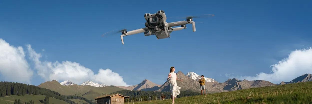 Širokoúhlá rotace dronu DJI Mini 5 Pro Fly More Combo a možnost pořízení vertikálních záběrů
