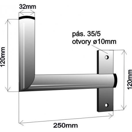 Držák antény na zeď u okna s pásem, pravé uchycení, galvanický zinek, délka 25cm, průměr 3,2cmDruh:Konzoly, stojany.