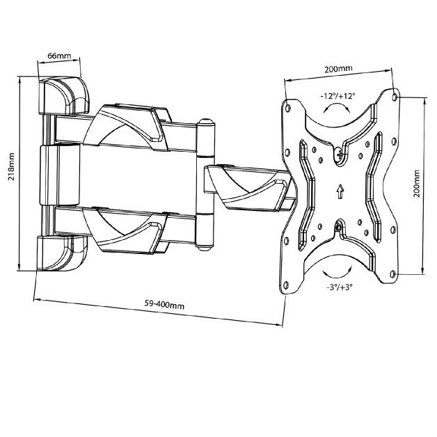 Držák LED LCD televize Fiber Mounts M7C42Nástěnný držák na LCD LED Tv 17-50", otočný až +/-90°, sklopný +/-12°, vzdálenost od zdi 59-400mm, VESA 75x75 až 200x200, krytky na kabeláž, nosnost 25kg.