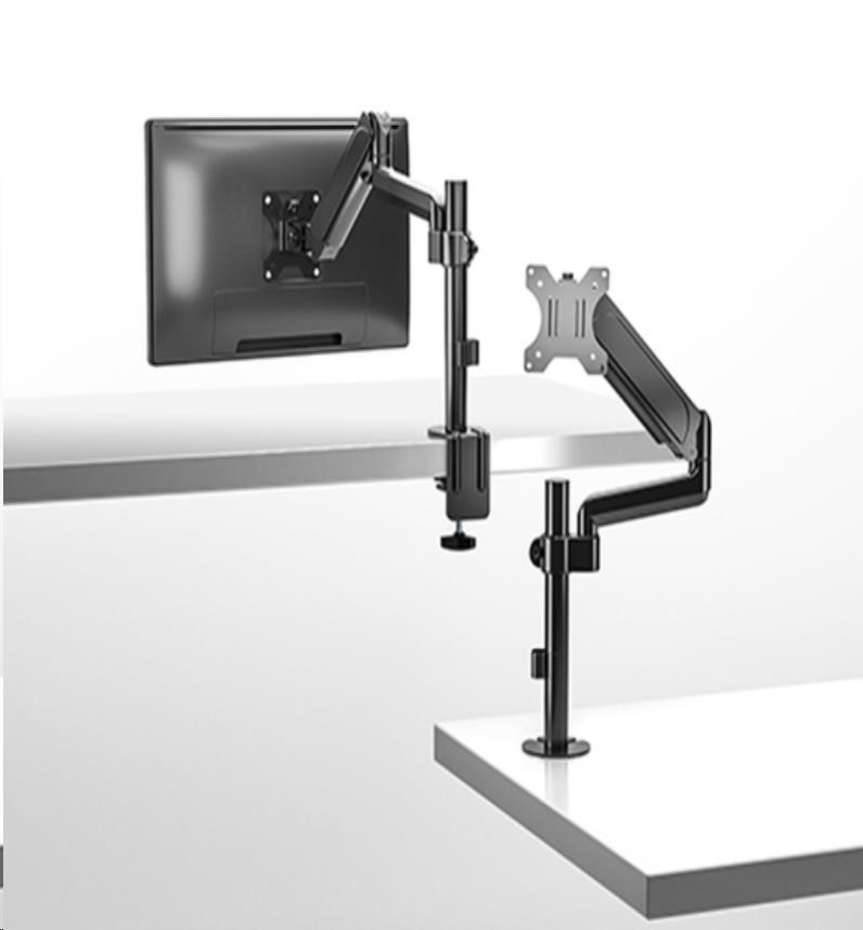 Díky odolné ocelové konstrukci poskytuje stabilní podporu pro jeden monitor s úhlopříčkou 17" až 32" a hmotností až 9 kg. Flexibilní konstrukce pro dostatečné nastavení výšky a pozorovacích úhlů s možností nastavení orientace monitoru na výšku nebo na šířku. Součástí balení jsou průchodky a svorky pro instalaci na téměř jakoukoliv pracovní plochu. Odnímatelná deska VESA pro uživatelsky přívětivou instalaci. Součástí balení jsou kabelové spony pro usnadnění organizace vedení kabelů.