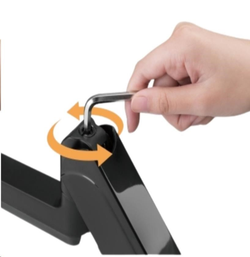 - Flexibilní nastavení polohy: Držák umožňuje snadné nastavení výšky pomocí plynové vzpěry, nastavitelný náklon monitoru v úhlu +35° / -35°, otočení monitoru o 360°, nastavení úhlů ramene o 180°, takže můžete snadno najít optimální pozici pro pohodlné a ergonomické používání. Odnímatelná deska VESA umožňuje snadnou instalaci monitoru.