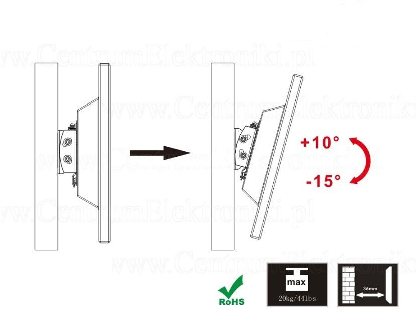 Držák monitoru Tv Fiber Novelty FN203TSklopný držák na Tv a monitory 13"-30", VESA 75x75 a 100x100, náklon +10° až -15°, vzdálenost od zdi 36mm, nosnost 20kg.