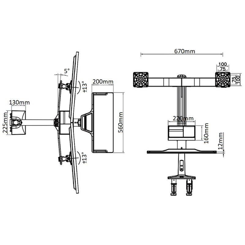 Držák na 2 monitory a klávesnici NB FC24-2A-B