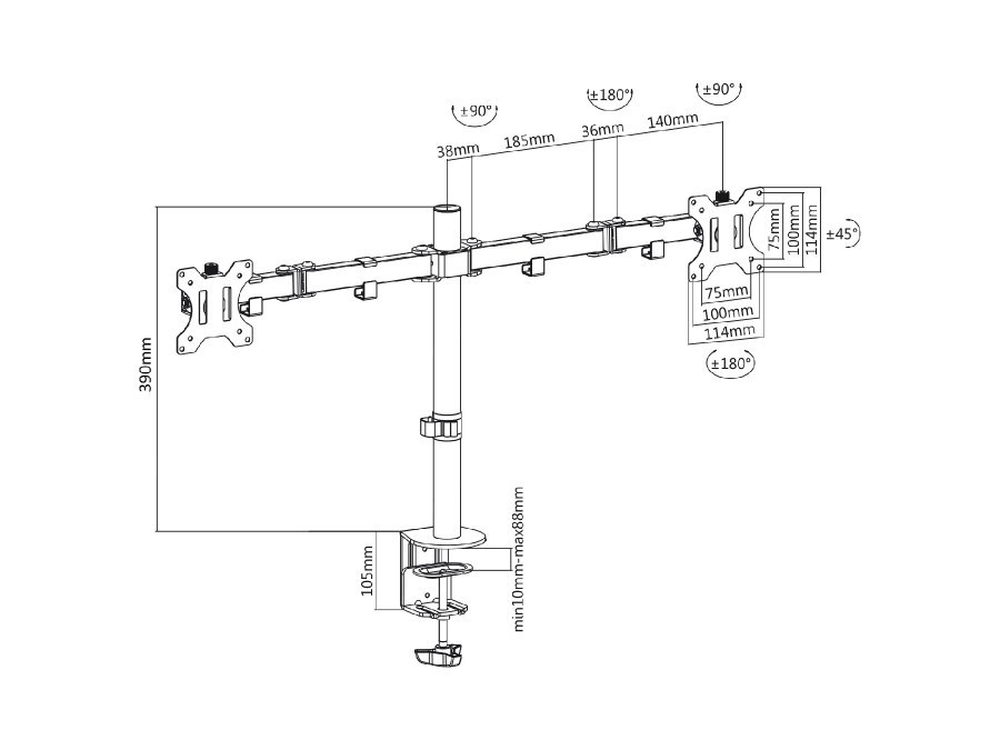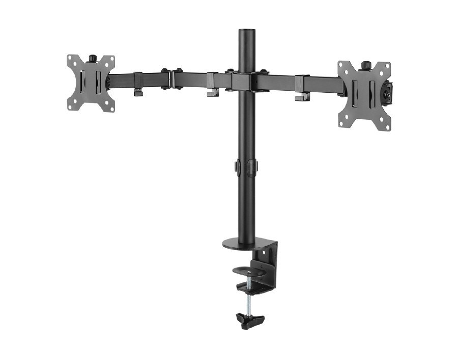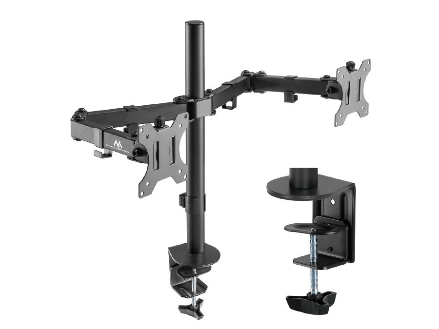 Držák na 2 monitory Fiber Mounts M8C84Stolní držák na 2 monitory 15-30", otáčení, naklápění, nastavení vzdálenosti a výšky, VESA 75 / 100, vedení kabeláže, nosnost 16kg.