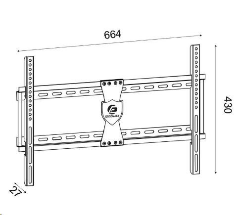 Držák na Tv bez polohování ErgoSolid PERTO-4FFixní držák pro zavěšení televizí 32-65" na zeď, VESA 200x100 až 600x400, nosnost 45kg, odsazení od zdi 27mm.