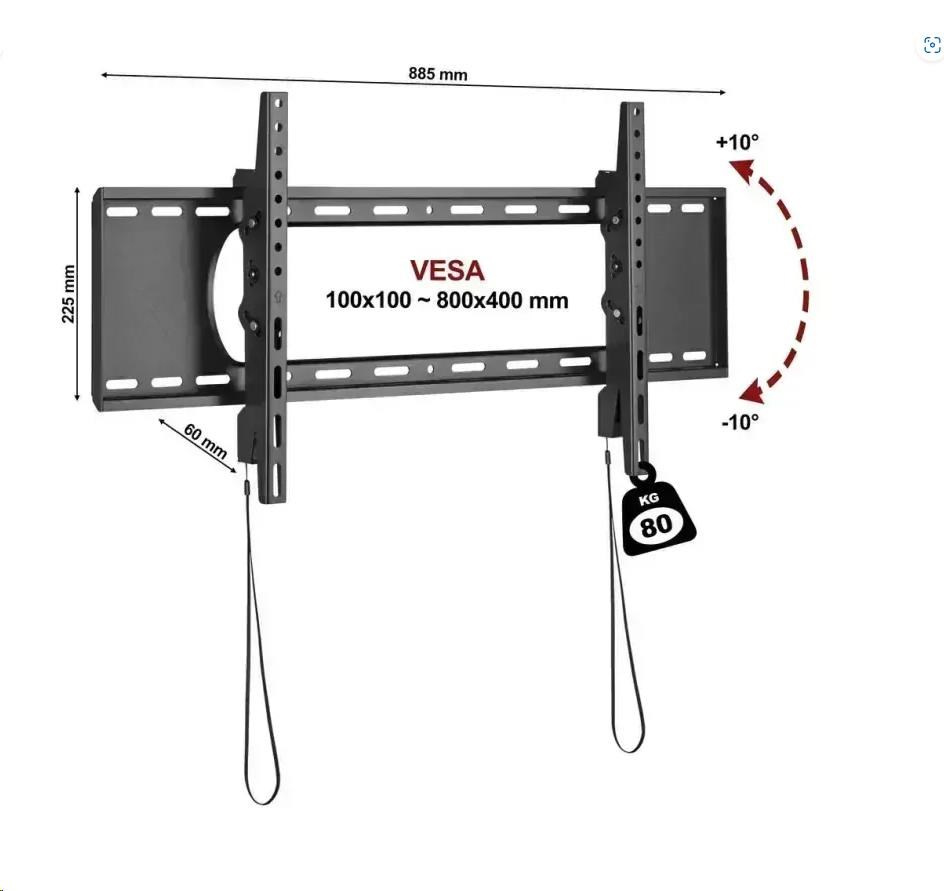 Držák televizoru Fiber Novelty C5TProfi sklopný držák na středně velké i rozměrné televizory / monitory 45" - 90", náklon +10° / -10°, vzdálenost 60mm, automatické zajištění Tv proti vysazení, instalační plocha 885 x 225mm, instalační materiál, VESA 100x100 až 800x400, nosnost 80kg.