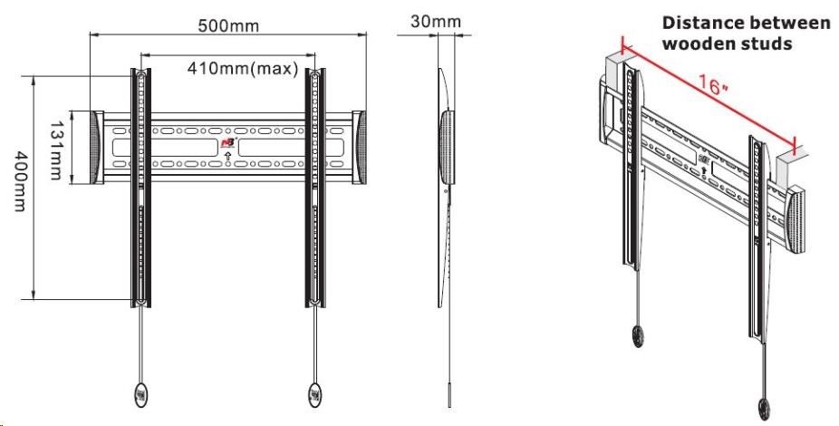 Držák Tv Fiber Mounts C2FProfesionální fixní držák pro zavěšení LCD LED i plazmových televizorů s úhlopříčkou 32-50" , vzdálenost od zdi 30mm.