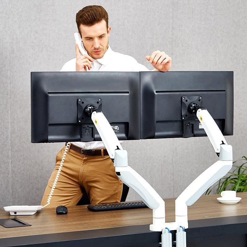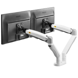 Dvoumonitorový stolní držák NB F195AWProfesionální stolní držák na 2 monitory 21"-32", plně polohovatelný, bílý.