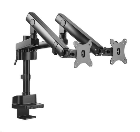 Dvouramenný stolní držák na 2 monitory Mounts AX812Stolní držák na 2 monitory, plné nastavení polohy monitorů, pěkný design, špičková kvalita.