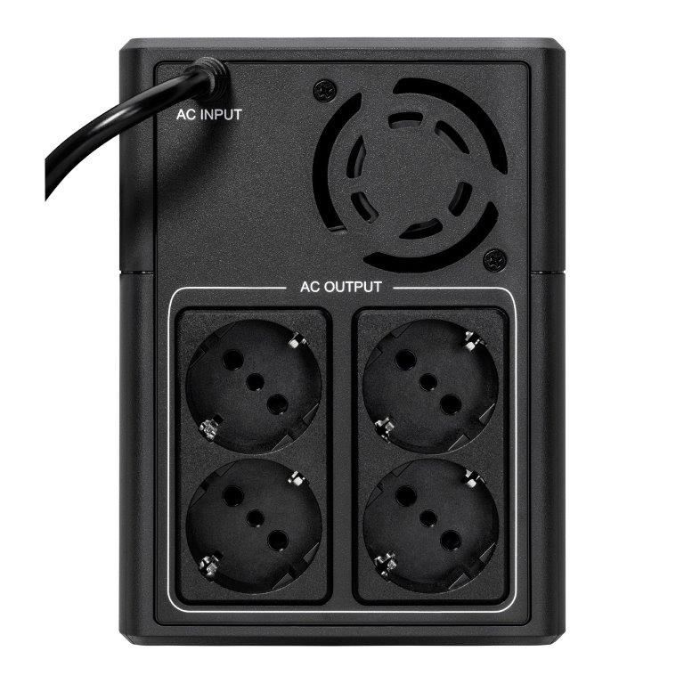 | Speciální funkce | Automatická regulace napětí (AVR) Úspora místa díky kompaktní věžové konstrukci Port USB kompatibilní s HID pro automatickou integraci s hlavními operačními systémy (Windows/Mac OS/Linux) Obsahuje čtyři zásuvky Schuko (DIN) |