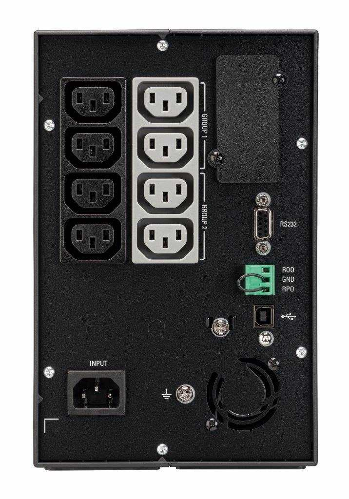 | Speciální funkce | Automatická regulace napětí (AVR) Energetická účinnost, snížení nákladů na energii a chlazení Poskytuje čistý sinusový výstup 1 slot pro volitelnou com kartu (karta pro správu sítě, reléová karta nebo síťová a průmyslová karta) Kompatibilní s virtuálními prostředími (VMware, Hyper-V, Citrix Xen, Redhat). Plná integrace se softwarem Eaton Intelligent Power Manager 1 port USB + 1 sériový port Technologie Advanced Battery Management (ABM) pro zvýšení životnosti baterie Grafický displej LCD nové generace Baterie vyměnitelné za provozu Vzdálený restart a optimalizace doby provozu díky 2 spravovatelným skupinám zásuvek Konektory pro dálkové zapnutí/vypnutí a dálkové vypnutí napájení |