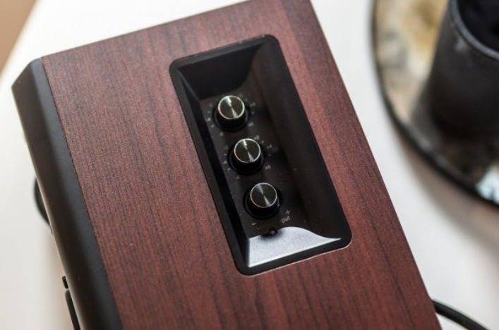 Vedle bezdrátového ovladače můžete k ovládání Edifier S350DB plně využít i manuální prvky bočního panelu. Tři knoflíky umožňují nastavit basy, výšky i hlasitost. Po zapnutí reproduktorů se rozsvítí kontrolka napájení, takže vždy máte přehled o tom, že jsou aktivní.