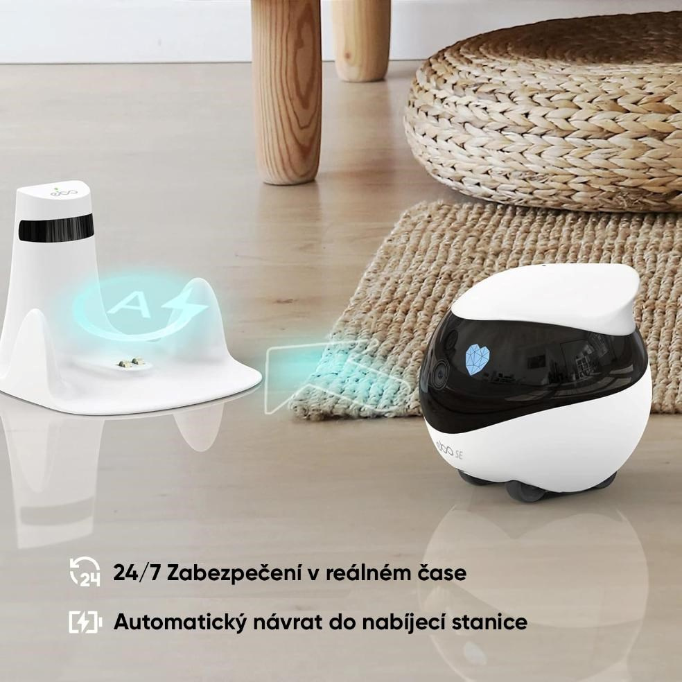 Enabot EBO SE je inteligentní mobilní kamera, která přináší zcela nový způsob, jak být v kontaktu s vaším domovem – ať už jste kdekoli. Díky pohybu na tichých gumových pásech se volně pohybuje po bytě, sleduje dění a přenáší obraz v reálném čase ve Full HD kvalitě. Dvoucestná komunikace umožňuje nejen slyšet, co se děje, ale také mluvit – ať už s dětmi, rodinou nebo domácími mazlíčky. EBO SE tak spojuje zábavu, praktickou funkčnost a bezpečnost v jednom kompaktním zařízení.