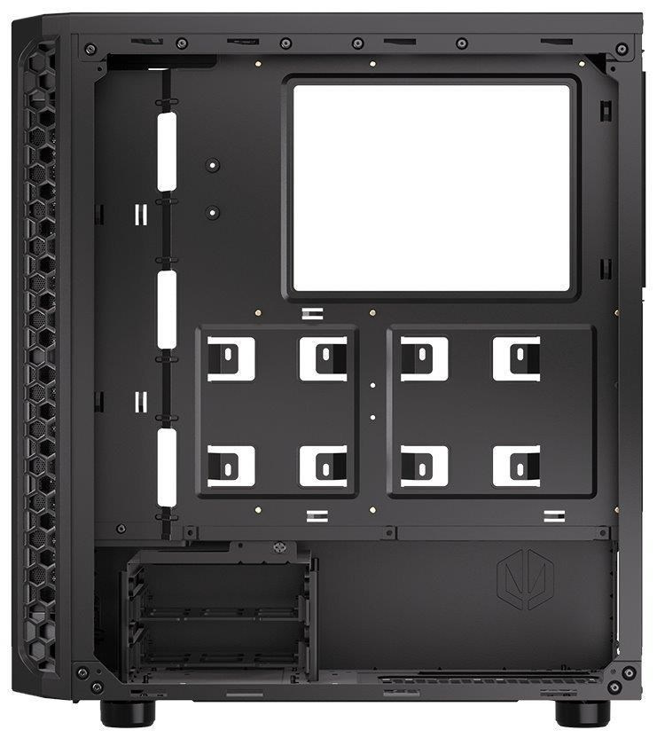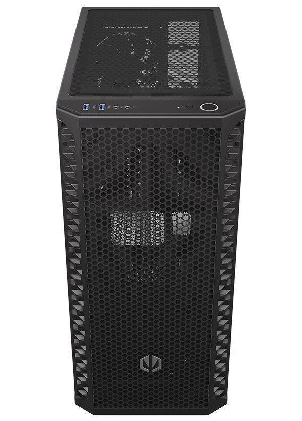 Skříň formátu Middle Tower nabízí dvě 2,5" pozice pro SSD disky a dvě 3,5" pozice pro pevné disky. Na horní části se nachází dva USB 3.0 porty, sluchátkový výstup a audio vstup pro mikrofon. Vybavena je jedním 120 mm ventilátorem, který spolu s perforovaným čelním panelem zajišťuje dostatečné proudění vzduchu. Důmyslné řešení umožňuje pohodlné umístění až 360 mm dlouhého výměníku vodního chlazení na přední straně. Ve skříni je dostatek prostoru pro chladič CPU do výšky až 161 mm a grafickou kartu o délce až 350 mm. Dodávána je bez zdroje. Součástí je také sada prachových filtrů.