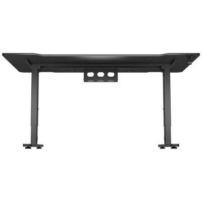 Herní stůl o délce 150 cm a šířce 78 cm nabízí dostatek prostoru pro myš, klávesnici a další příslušenství. Výšku lze nastavit ve čtyřech krocích (72, 75, 78 a 80 cm) tak, aby odpovídala vašim potřebám. Na spodní straně desky je umístěn systém pro správu kabelů, které lze následně vést průchodkami v nohách stolu. Maximální stabilitu zajišťuje robustní ocelová konstrukce s nosností až 80 kg. Povrchová úprava desky stolu ve stylu uhlíkových vláken nejen dobře vypadá, ale je také odolná proti poškrábání. V neposlední řadě zajisté potěší kovová polička pro napájecí lištu na zadní straně a háček pro zavěšení sluchátek.