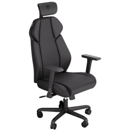 Robustní herní židle s atraktivním designem poskytuje dokonalou oporu a pohodlí i při dlouhém sezení u počítače. Je vyrobena z kvalitní prodyšné textilní látky a syntetické kůže. Nastavitelná výška židle, opěrky rukou nastavitelné ve všech směrech a úhel sklonu opěradla až 125° zajistí maximální komfort. Kolečka o průměru 60 mm jsou pokryta vrstvou odolného nylonu, který zároveň chrání podlahu před poškrábáním a snižuje hlučnost. Nosnost židle je až 120 kg.