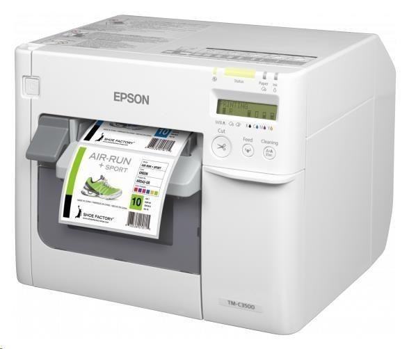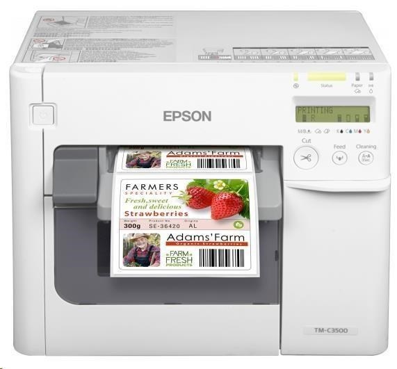 Epson ColorWorks C3500, cutter, disp., USB, Ethernet, NiceLabel, whitecolour label printer, ink-jet (multicoloured), media width (max.): 112 mm, print width (max.): 104 m