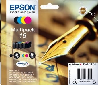 Kód: 1091246Prodejní číslo: C13T16264012EPSON ink 16 Series 'Pero' multipack