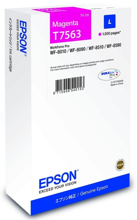 Kód: 1090910Prodejní číslo: C13T756340EPSON Ink bar WF-8xxx Series Ink Cartridge L Magenta - 1500str. (14 ml)